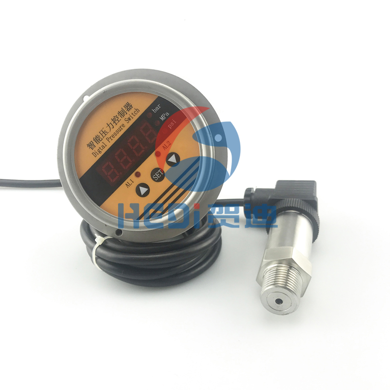 HDK104Z智能壓力控制器是集壓力測量,顯示,輸出、控制于一體的智能數顯壓力測控產品。該產品為全電子結構,前端采用帶隔離膜充油壓阻式壓力傳感器,由高精度的A/D轉換,經微處理器運算處理,現場顯示,并輸出一路模擬量(4~20MA)和兩路開關量。
